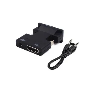 HDMI to VGA adapter for connecting media players and other devices to screens without an HDMI input. Converts digital signals to VGA video.