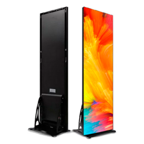 Mobile LED posters (197 cm) with a protected screen. Use standalone or seamlessly splice into a large video wall. Supports live streams and offline ads.