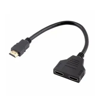 HDMI splitter (1 input to 2 outputs) for simultaneous broadcasting of the same content from one media player to two screens. Supports digital video and audio (all HDMI versions).