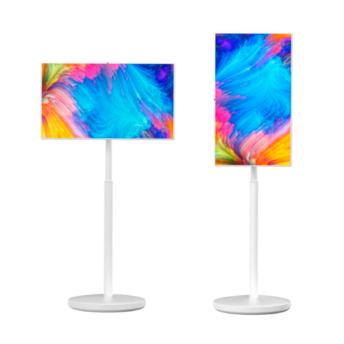 Mobile displays (24–32") on a stand with a battery and sound. Operates autonomously without power. Easy to set up anywhere for presentations.